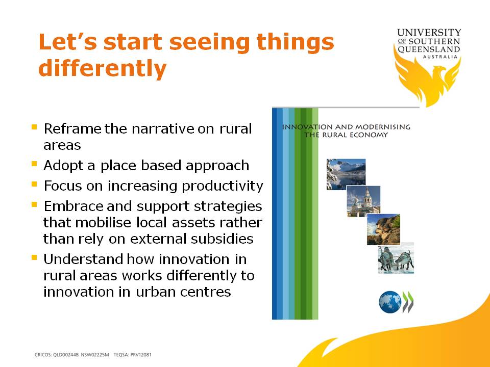 In the rural regions of regional Australia at least we would do well to take on the recommendations of the 2014 OECD report on “Innovation and Modernising the Rural Economy”.