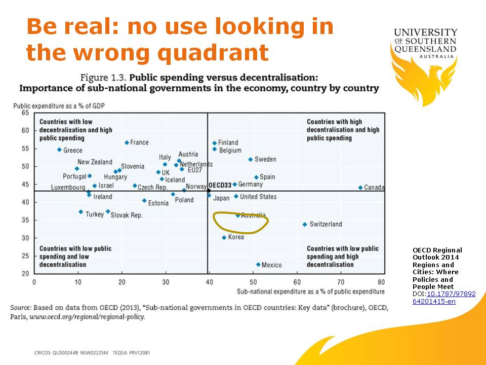 And as the OECD Regional Outlook for 2014 showed recently, Australia is one of those countries with high de-centralisation and low public spending on infrastructure.