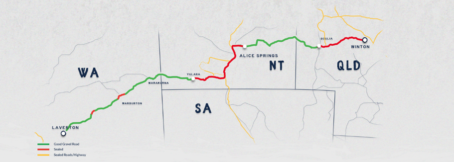 The Outback Way showing gravel in green and sealed in red – Source: https://www.outbackway.org.au/