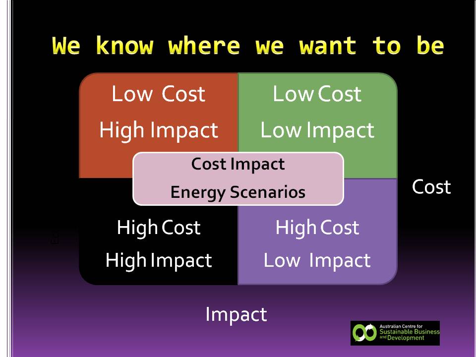 The funny thing about the future is that we have a fair idea of where we want to go and in what condition we want to be – and it is in the most resource efficient low impact corner of the cost-impact quadrant.